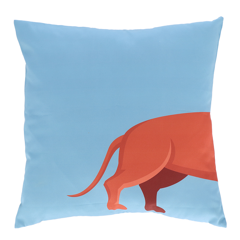 Outdoor-Kissen mit charmantem Dackel Motiv. Vorder- und Rückseite des Kissens sind mit unterschiedlichen Motiven bedruckt. Platzieren Sie zwei Kissen nebeneinander, um das vollständige Bild zu erhalten. Der Kissenbezug besteht aus wetterfestem Material und ist daher ideal für den Außenbereich geeignet. Dank des Reißverschlusses lässt sich der Bezug leicht abnehmen und waschen.