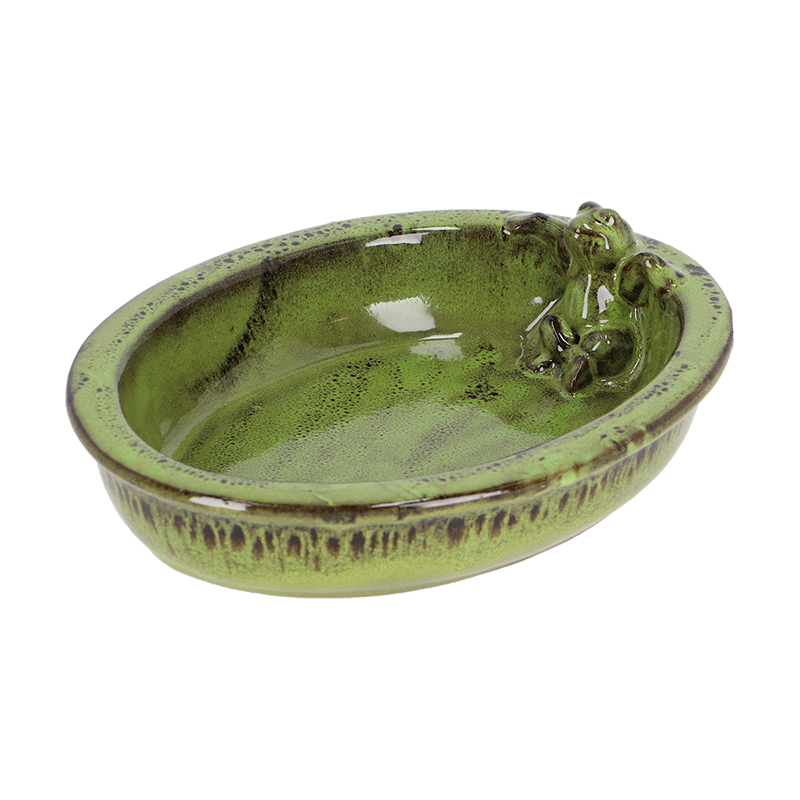 Vogelbad gemaakt van keramiek met speels ontwerp. Dit vogelbad biedt een veilige, ondiepe plek voor vogels om te drinken en te badderen. Perfect om een vredig, door de natuur geïnspireerd middelpunt te creëren in elke buitenruimte.